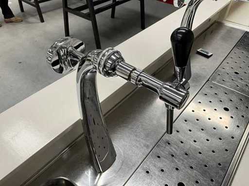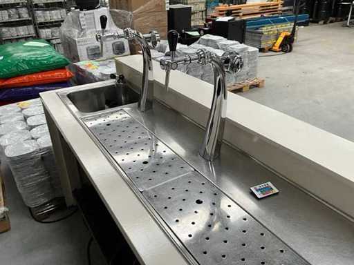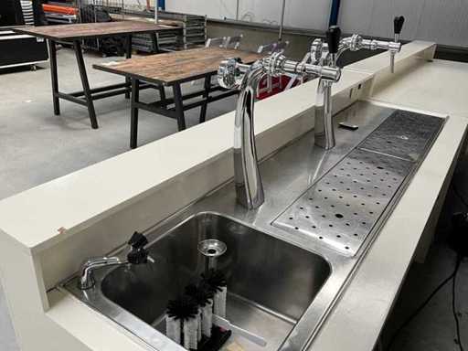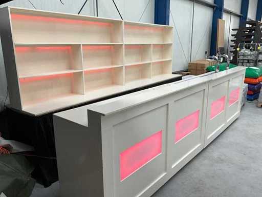Existing 2x bar part, size: 750x2100x1180 mm, 2x back wall size approx 8x2100x2100. Equipped with 2x tap, beer cooler, LED lighting.