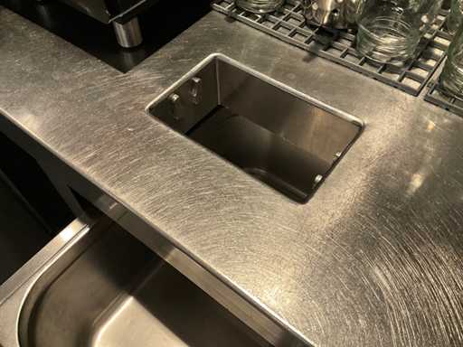 Bar back wall with stainless steel sink and work table (C)