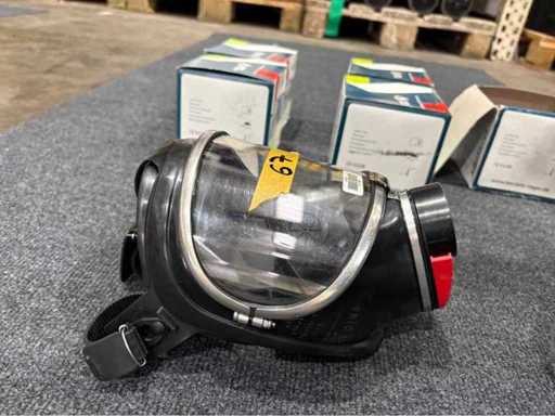 - Mask: Black with clear visor Filter: Gray with colored marking (multi-area protection)