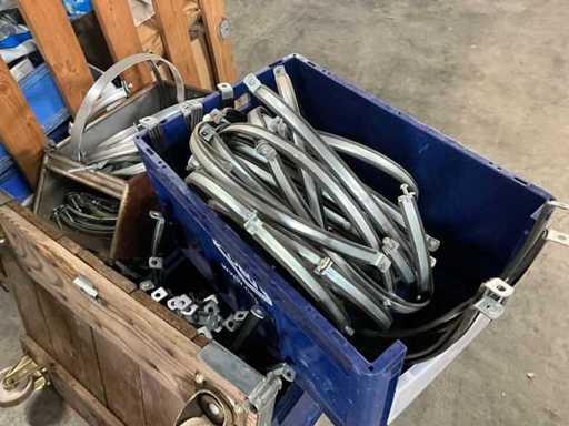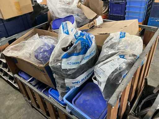 On 2 pallets, various flex plugs, screws and pipe clamps