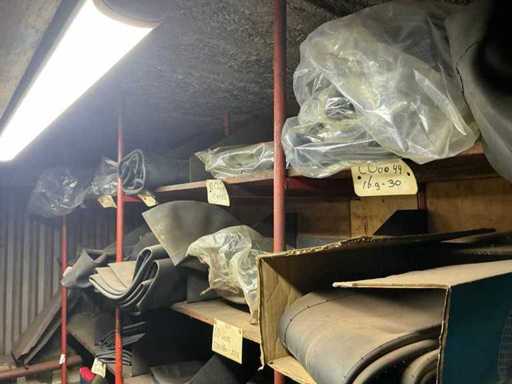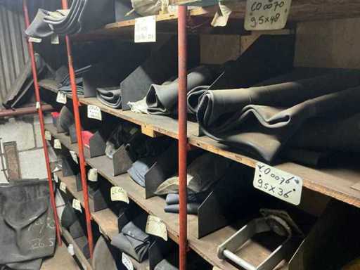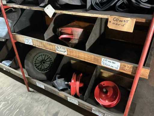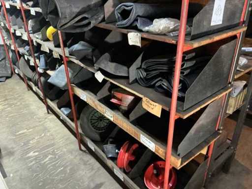 Contents of stock, different sizes of inner tubes, rack with outer tubes