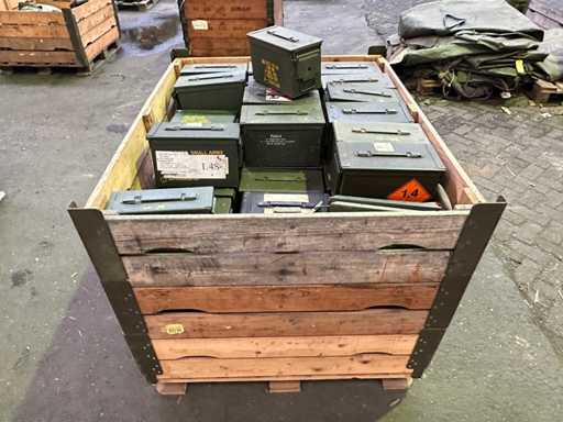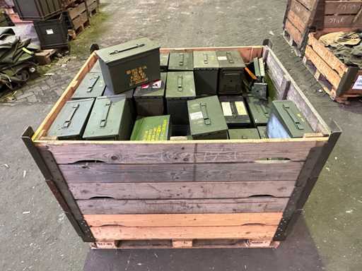 This batch consists of about 75 metal ammunition boxes.