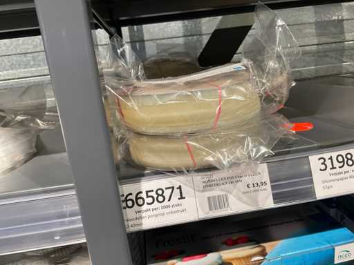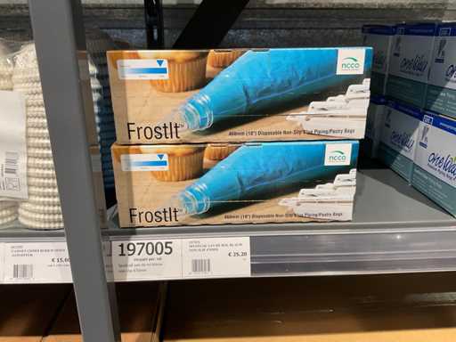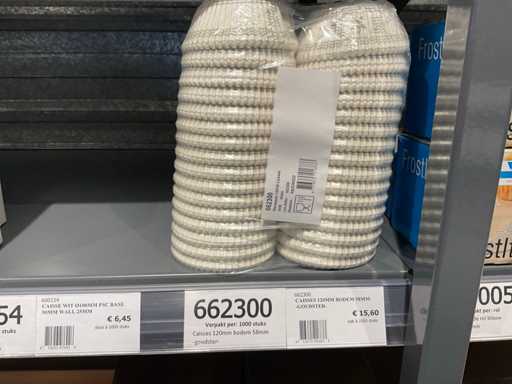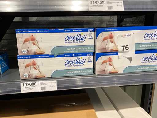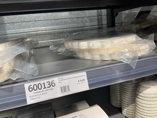 Contents of 1 side of the rack consisting of, among other things, cake board, cake cups, cake edges, window sills, piping bags, rondels, baguette bags, excluding rack.