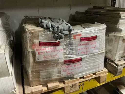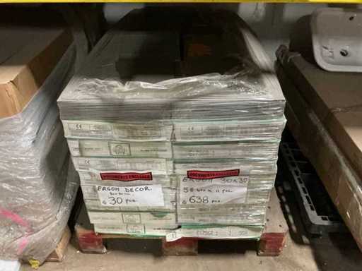 Including Ergon décor 30x30cm, 45m2 ceramic tiles Nez de marche 30x30cm, Stabigo gray and white 30x10cm, yellow wall tiles 10x10cm, skirting plan grės 10x30, Zenith Batt Lev Nero 9.5x40cm and Smov Uranite, complete with various bathroom mirrors Dana Clair