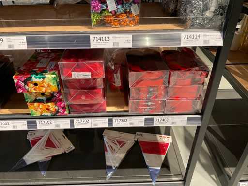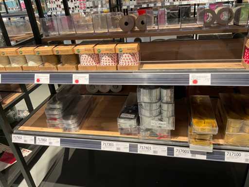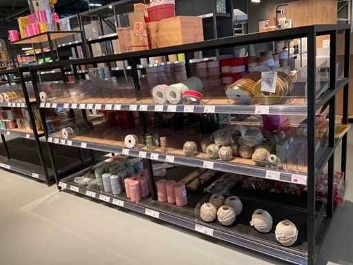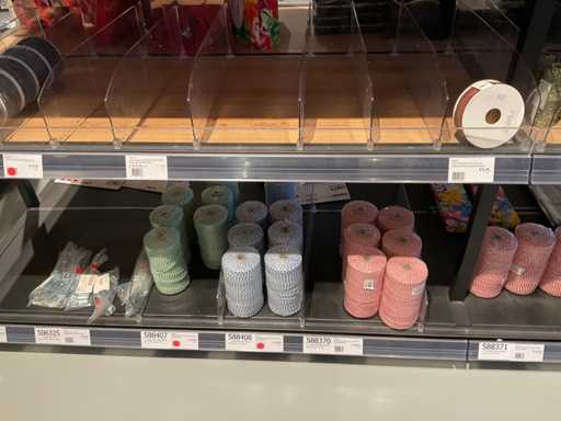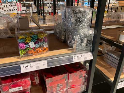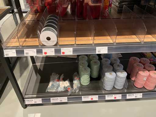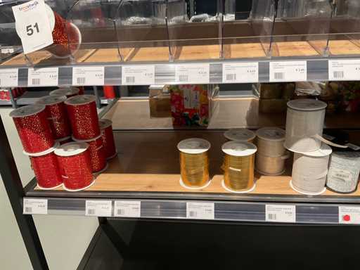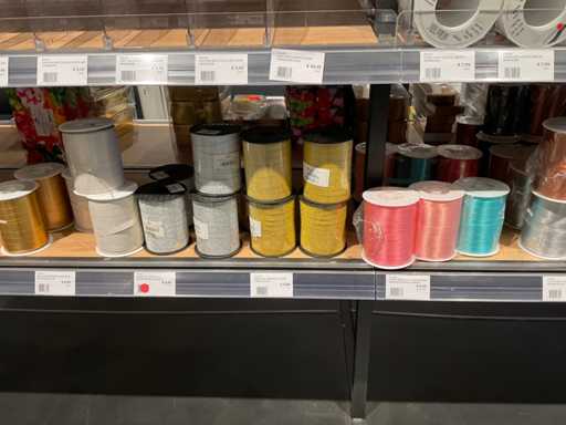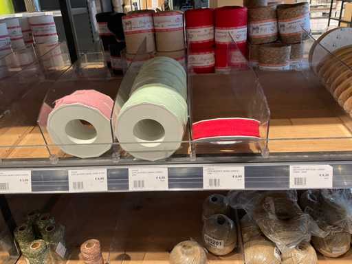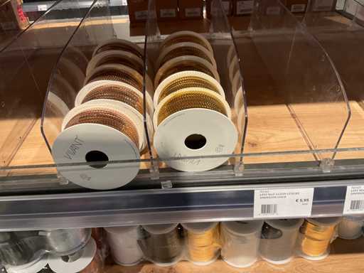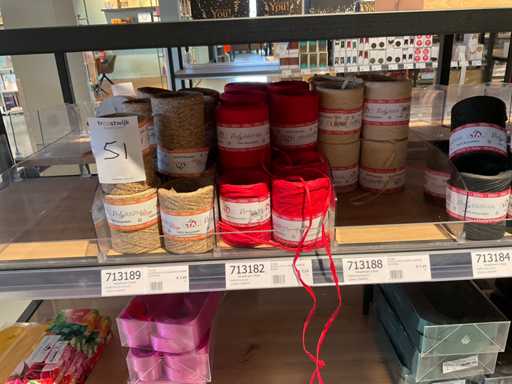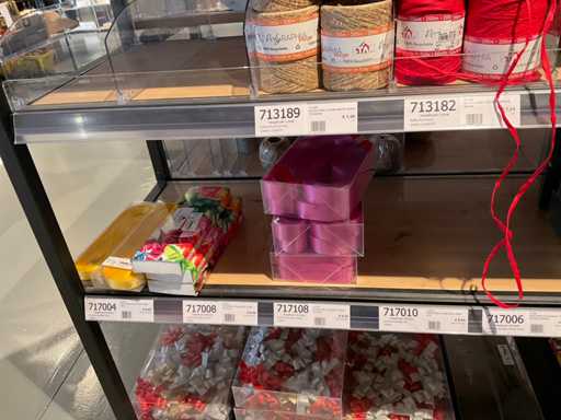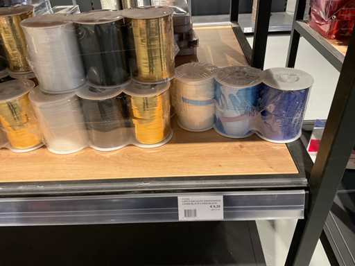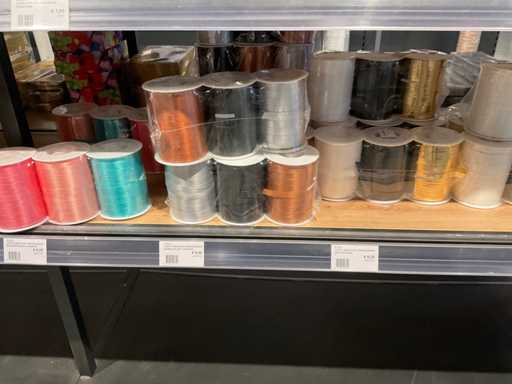Contents 2 sides of the rack, consisting of curling ribbons, bows, raffia. Excluding rack