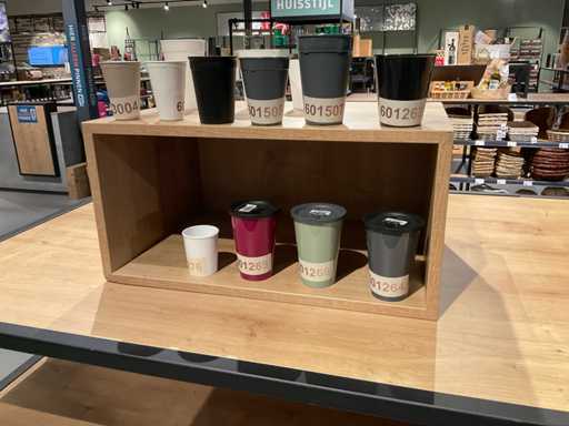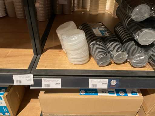 Contents 1 side of rack consisting of, among other things, reusable cups, lids. Excluding rack.