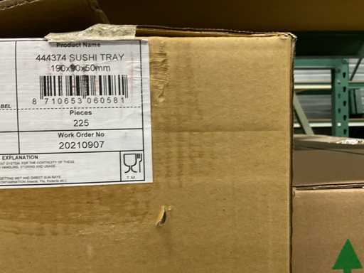 Contents of 2 sides of rack consisting of sushi tray, salad trays, bowls, excluding rack.