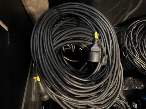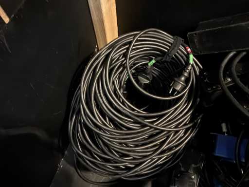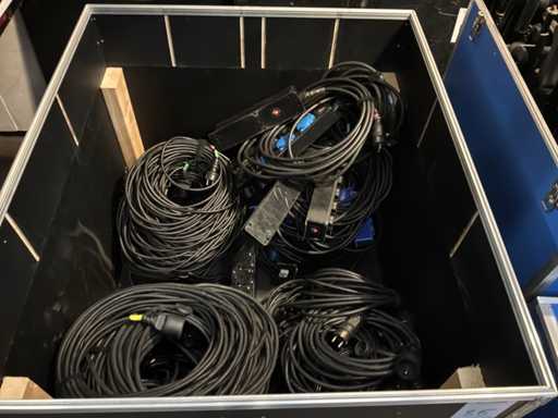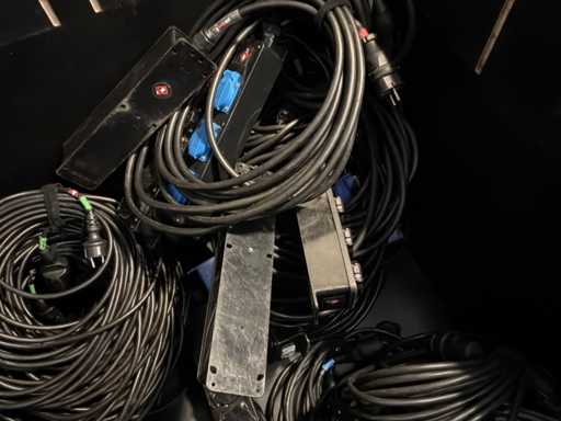 Various lengths, some with distribution blocks. Includes flight case (lid is missing)