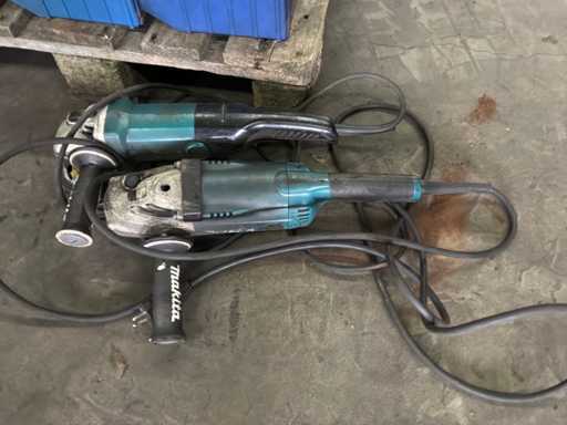 2x Pallet with various bolts, nuts. 2x angle grinder (Makita), Buckets with various materials