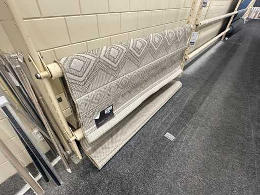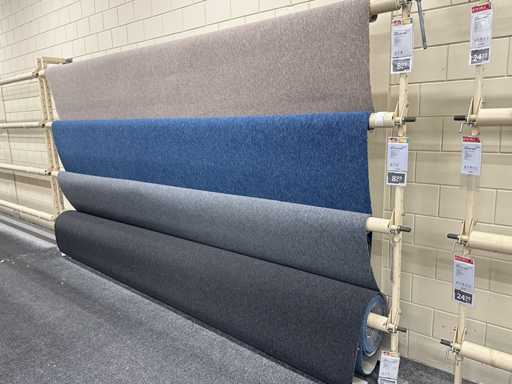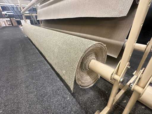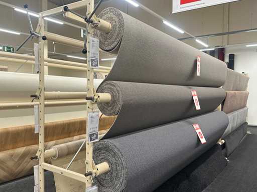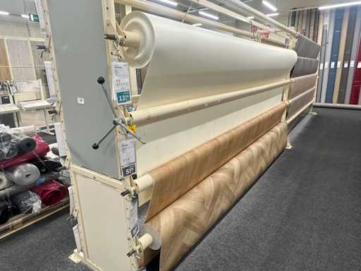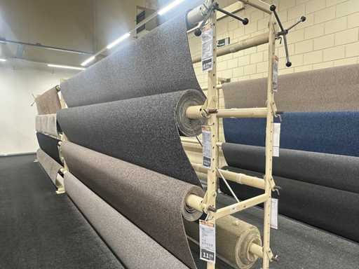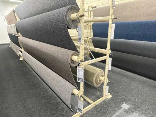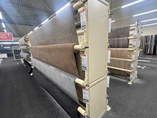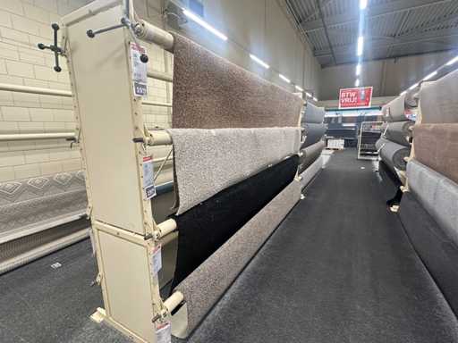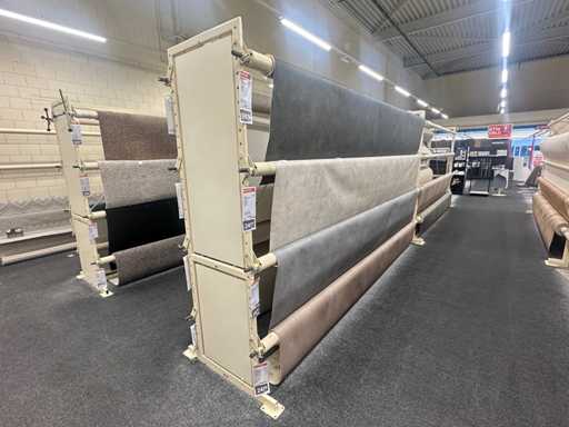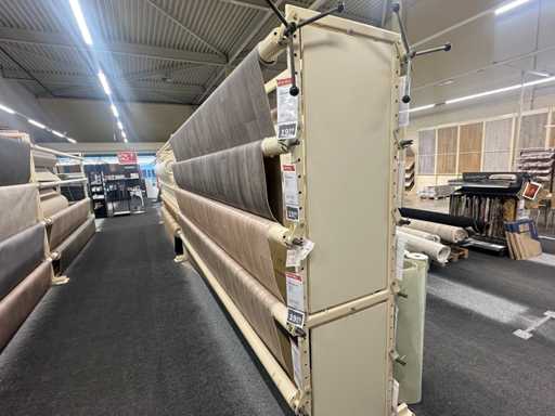 This lot consists of various types of floor covering on 10 racks. Different sizes and colors. Excluding racks.