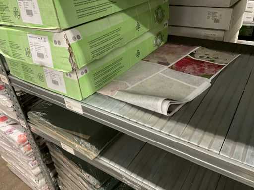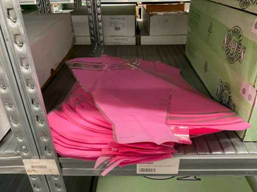 Contents of 1 side of shelf consisting of flower sleeves and flower paper sheets, in different sizes, excluding shelf