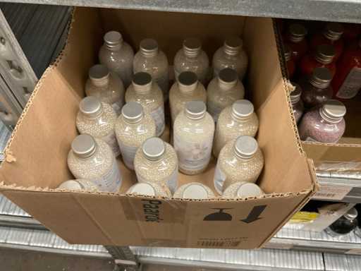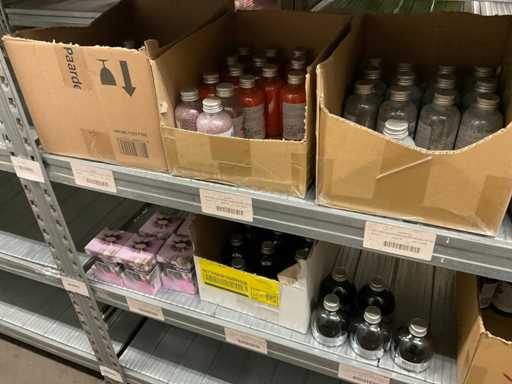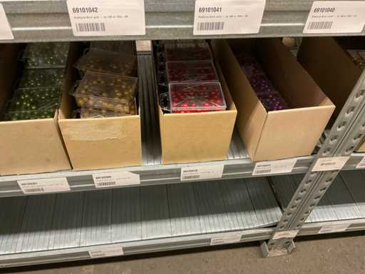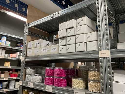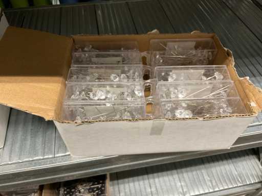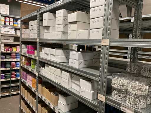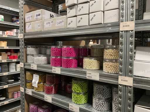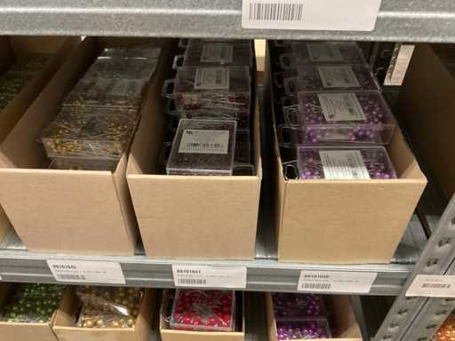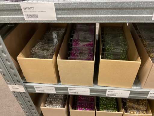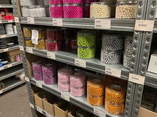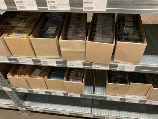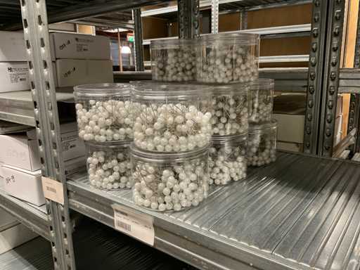 Content part of 1 side of rack consisting of pearls, pushpins, water pearls, and dye for water, excluding rack