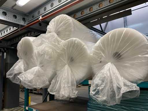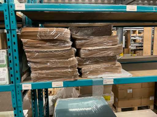 Contents part of 2 sides of rack consisting of opp sheets, kraft sheets, bubble wrap, excluding rack