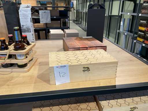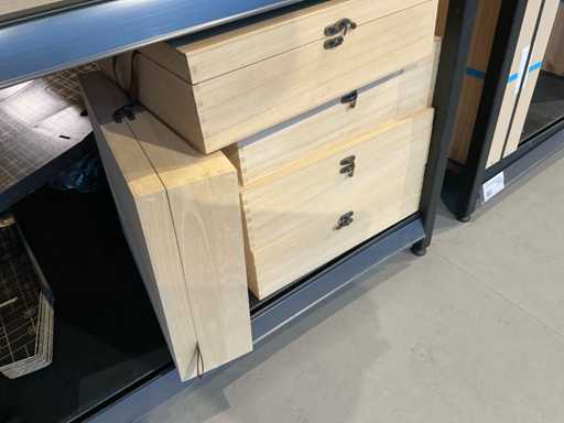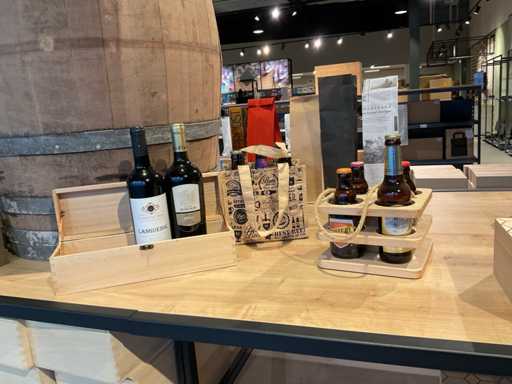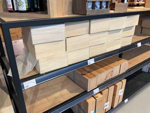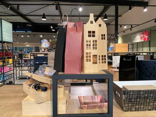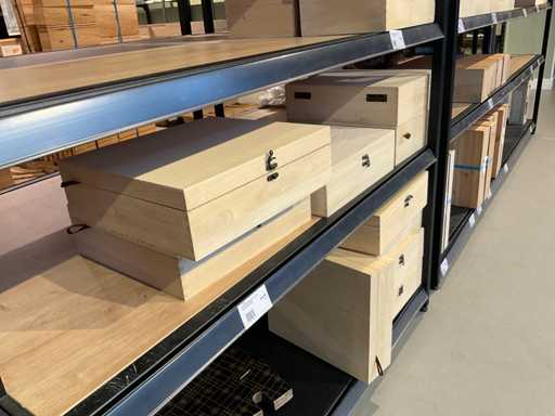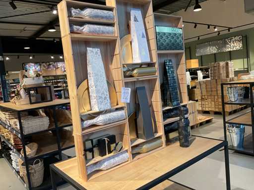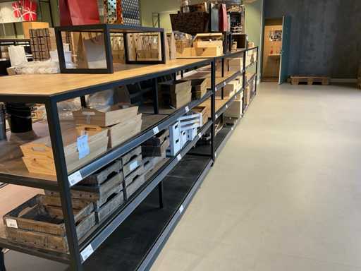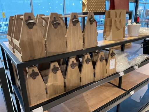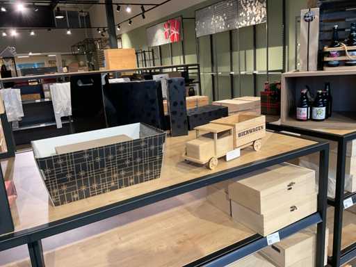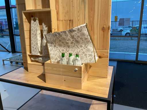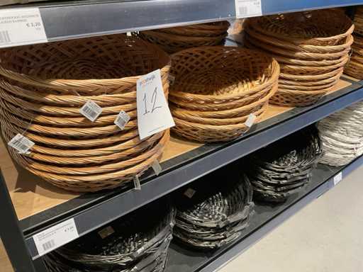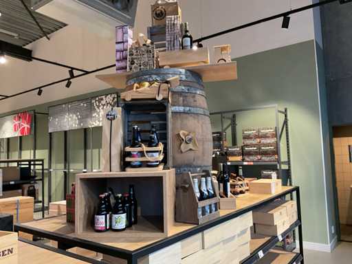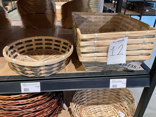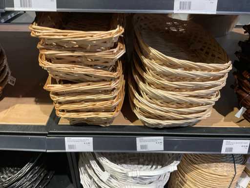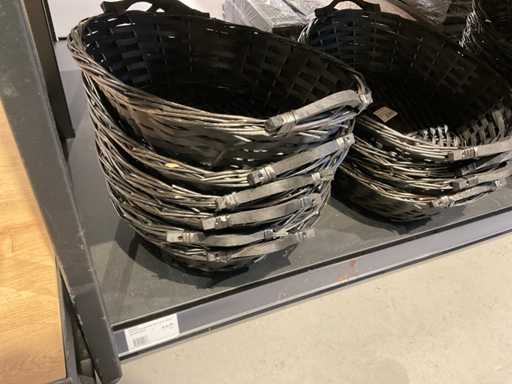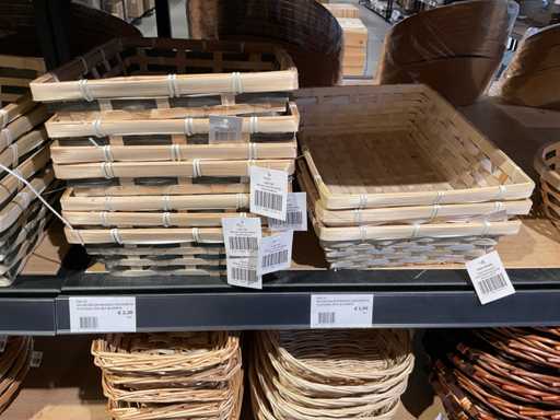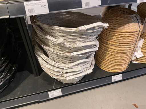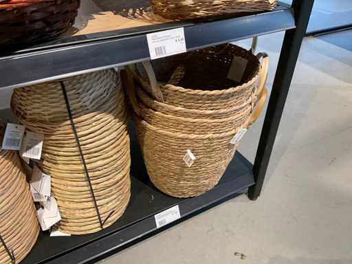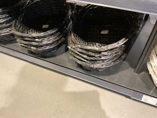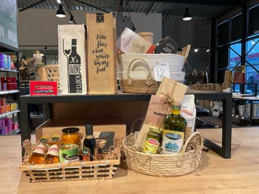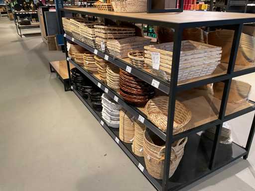 Contents 3 racks consisting of fruit baskets, wicker baskets, wine bags and wine boxes, excluding rack.