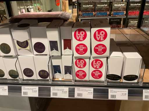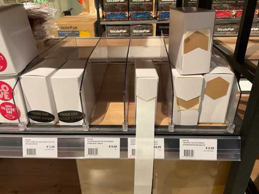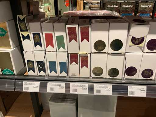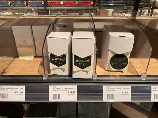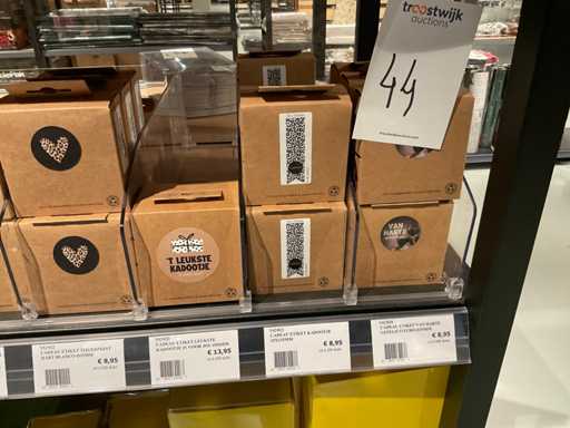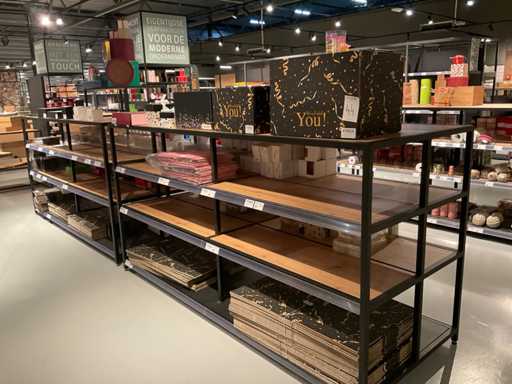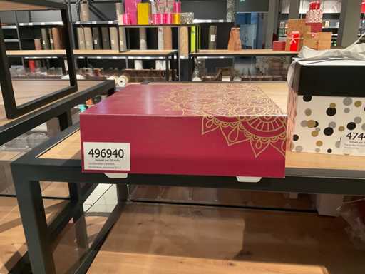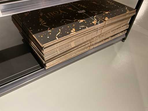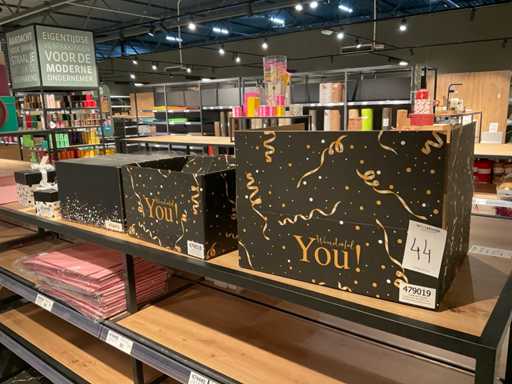 Contents of 2 sides of the rack consisting of gondola boxes, Christmas gift boxes, labels, haberdashery bags, excluding rack.