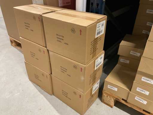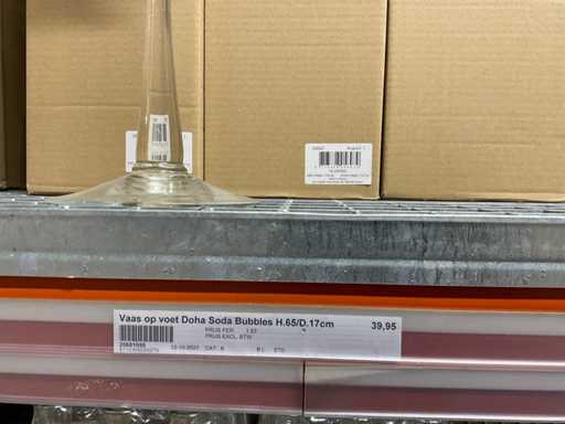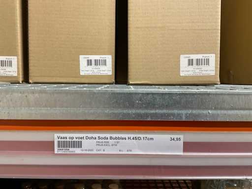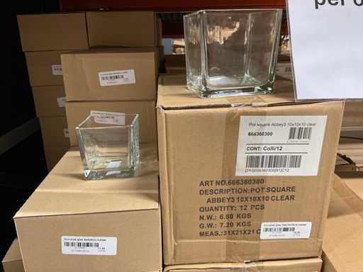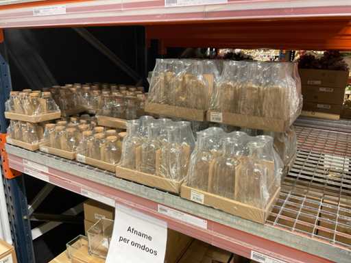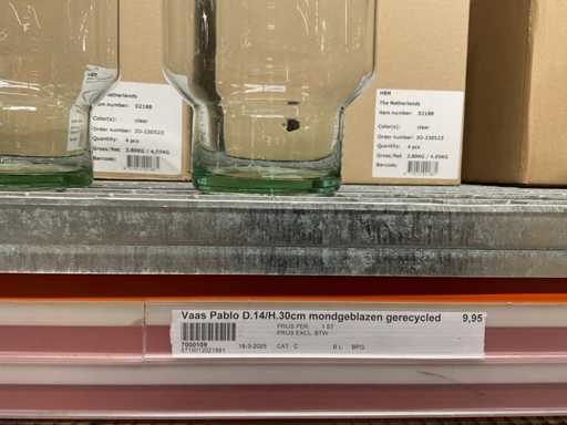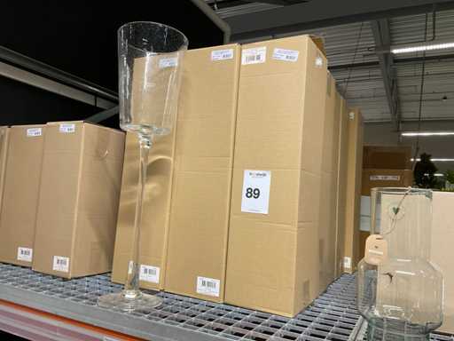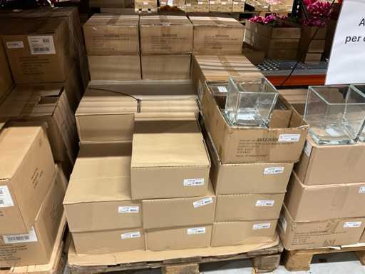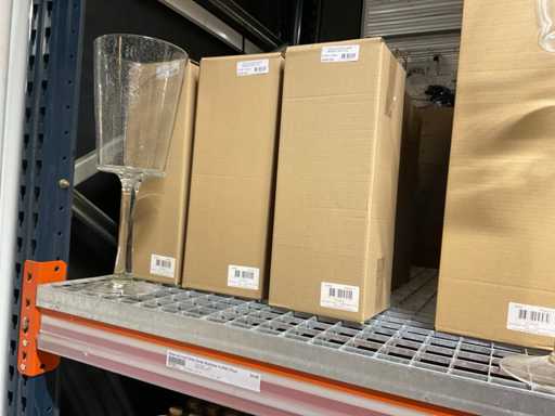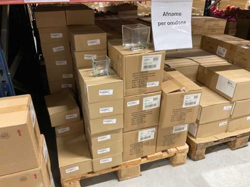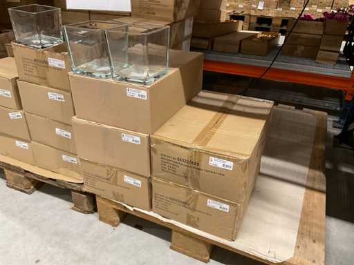 Contents section pallet racking consisting of various models and sizes of glass vases
