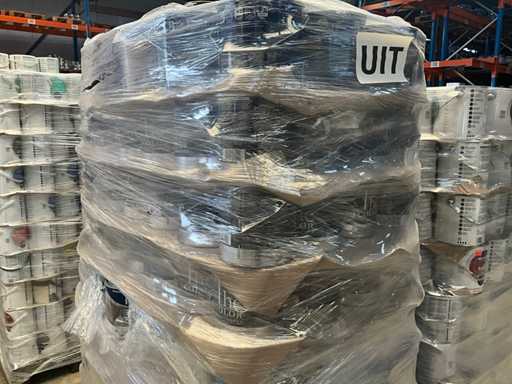 Concerns 1x pallet, 10 layers stacked high, 2.5 liter cans.
