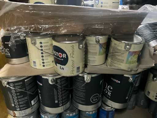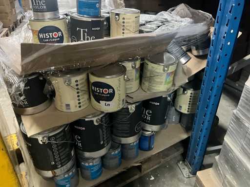 This is 1x pallet, stacked 4 layers high. 2.5 liters, 1 liter. Including primer, varnish and wall paint.
