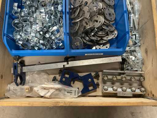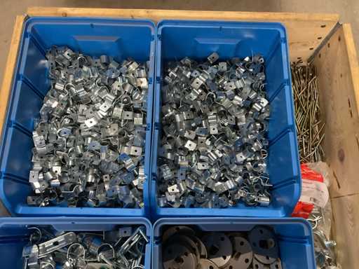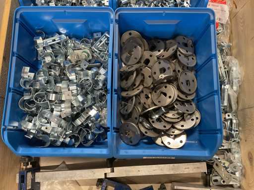 - o.a. leidingbeugels, douchekraan muurplaat met perskoppellingen, Fox buisklem set, etc.