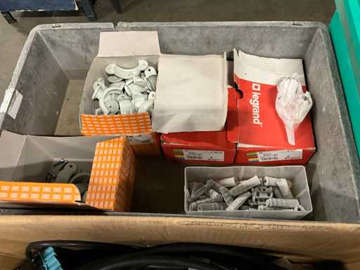 Including coupling cables for lighting, flush-mounted boxes, pipe clamps, wall sockets and various on the table