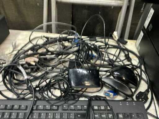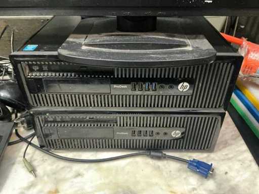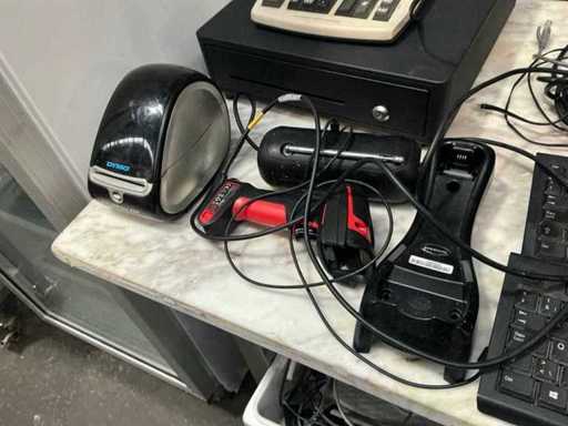 Consisting of: 2x desktop HP Prodesk Pentium, 2x Ilyama Prolite X2380HS monitors, 2x mouse and keyboard, hand scanner, ticket printer, cash register, calculator. Some cabling available. Possible missing cabling