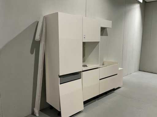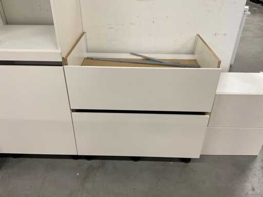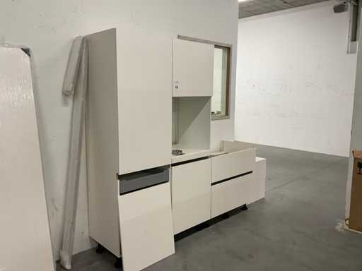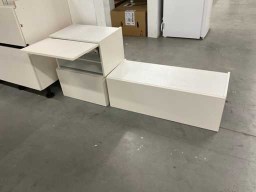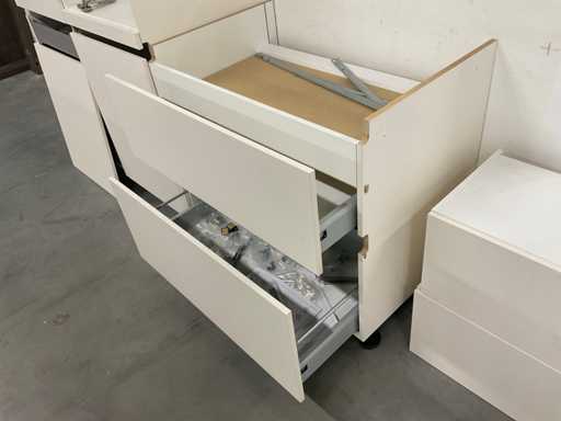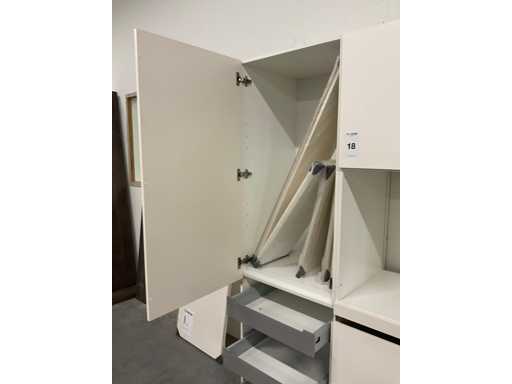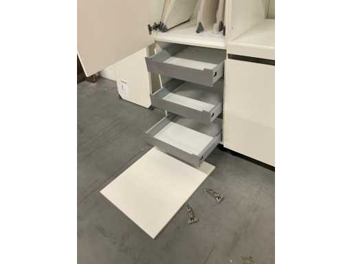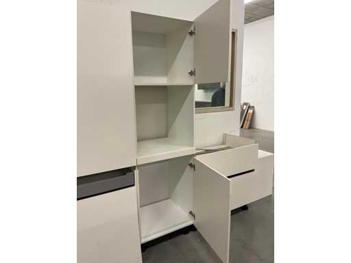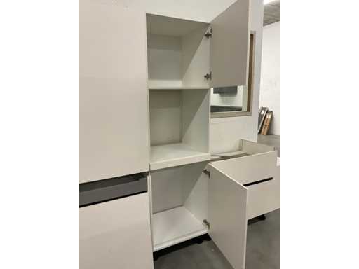 1 chest of drawers 90 cm wide; 2 high cabinets each 60 cm wide; 211 cm high; 3 wall cabinets with flap door; 2 pieces dim. 50x37x30 cm and 1 piece 90x37x30 cm