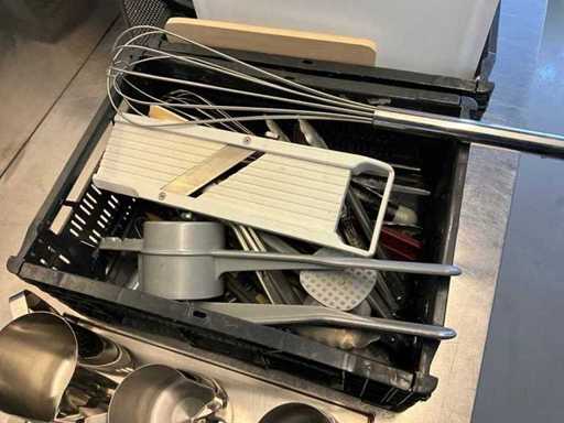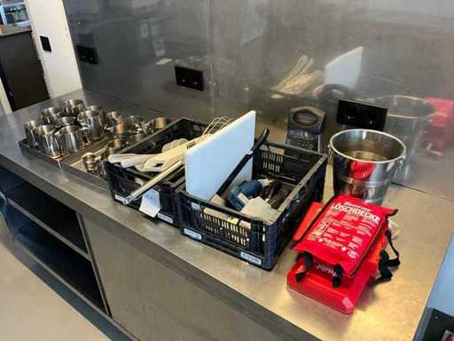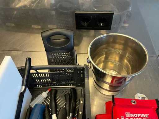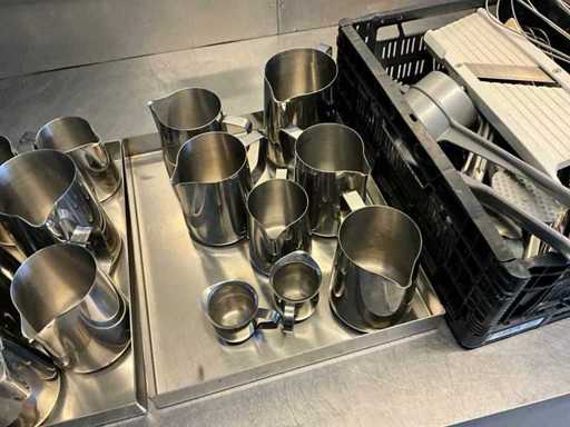Stainless steel milk jugs, kitchen tools, 3x fire blanket