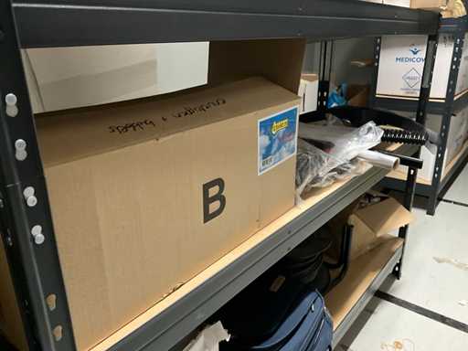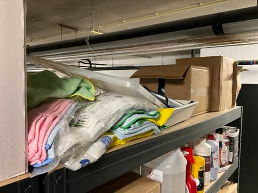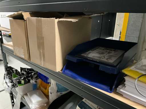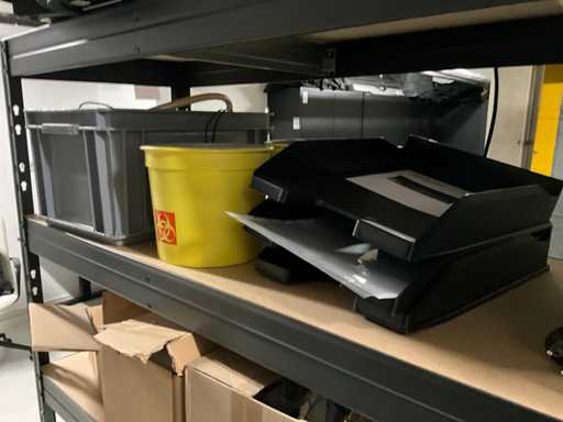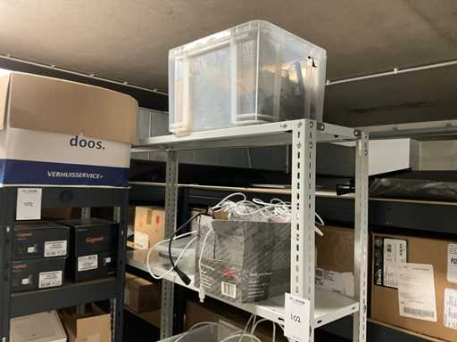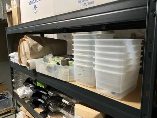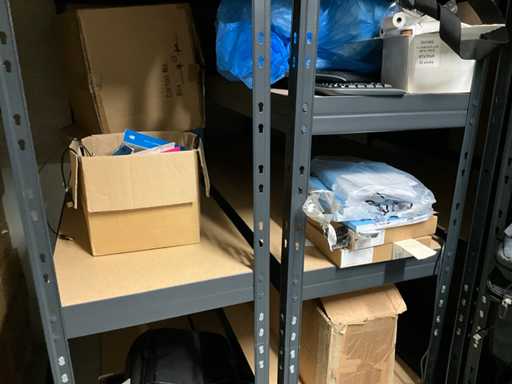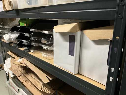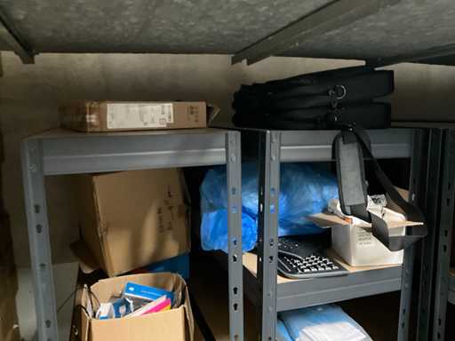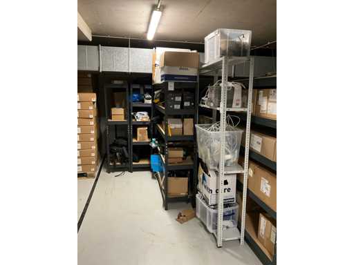 Including coffee machines; Consumables; office supplies; desk; filing cabinets; Fire extinguishers; Cables; laptop bags; Keyboards; mice etc. Includes 8-section Shelving