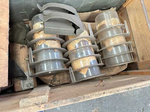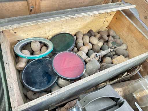 This batch consists of various colored lenses, glass plates and wooden knobs.
