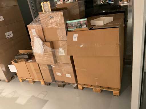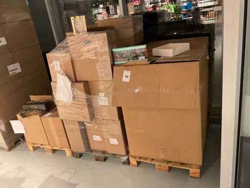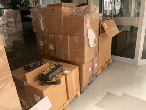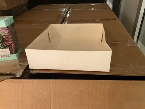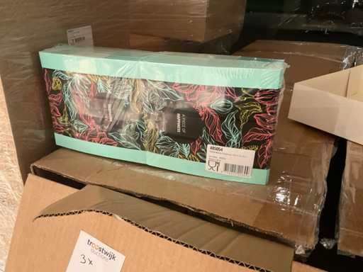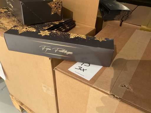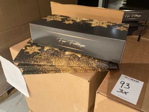 Contents on 3 pallets consisting of Christmas gift packaging, chocolate packaging, cake boxes. Including pallets.