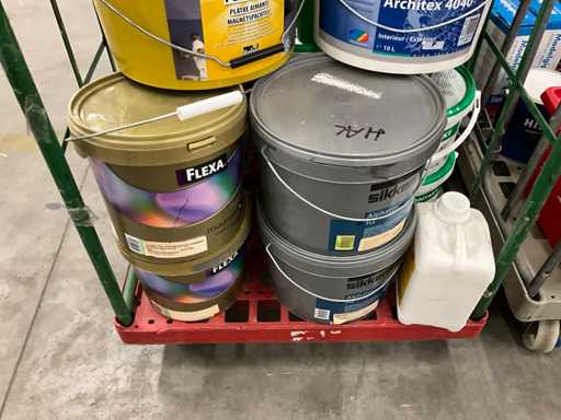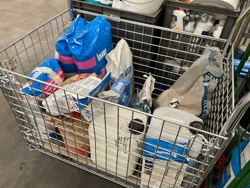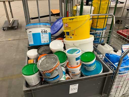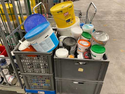various types of paint, leveling mortar, tile + special adhesive, primers, on and with transport carts