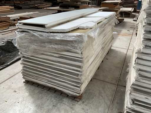 On 2 pallets size per pallet 122x260x150 cm, 122x260x120 cm, of which 33 plates size approximately 122x260x4 cm and 6 pieces size approximately 51x260x4 cm