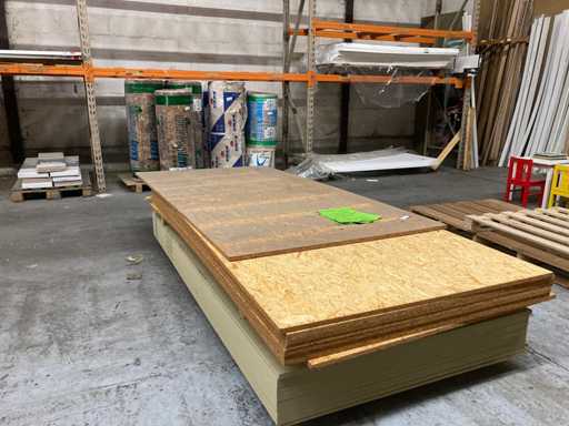 Lot of building materials : 2x styrofoam plates of 200x100x5cm 13x plates of 200x120x2cm 2x Knauf insulation material orange suit 1x Knauf insulation material green pack small 1x Knauf insulation white suit 2x Ursa glass wool insulation rolls 5x Knauf insulation material large pack 9x OSB plates of 244x122x1.8cm 11x MDF sheets of 244x122x1.8cm 7x packs of wall and ceiling panels white Avanti Pro 12 2x packs of Dumawall XL panels (1 of the 2 has been opened) 3x packs of Maestro ceiling panels white