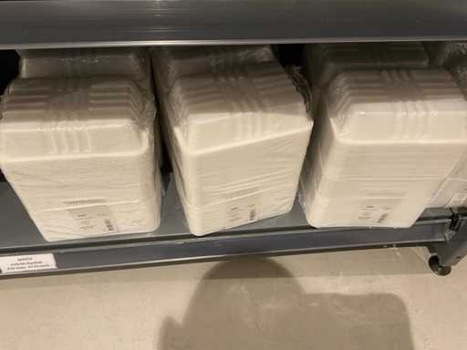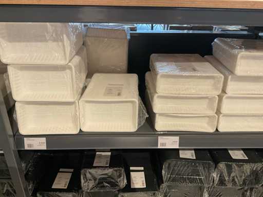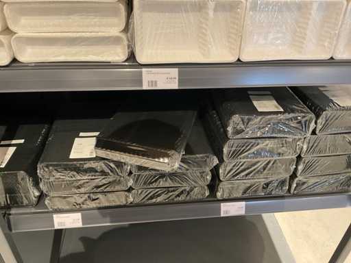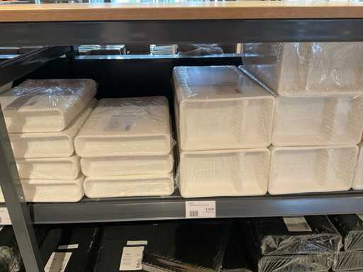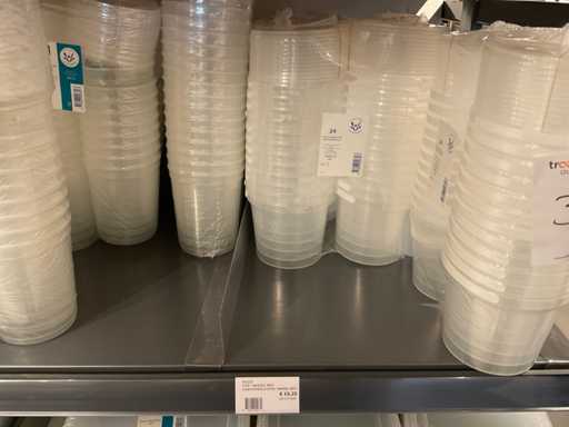 Contents of 1 side of 2 racks, soup pot and lid, cup and lid, div. Menu bins, div. Container tray sizes, excluding shelving