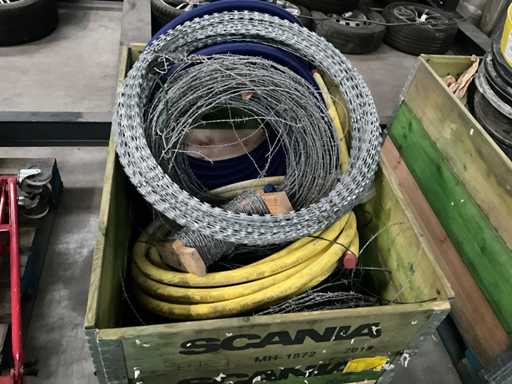 Consisting of prickly wire, PVC water hoses, etc.., in pallet box