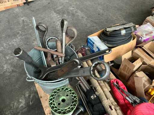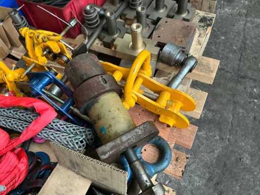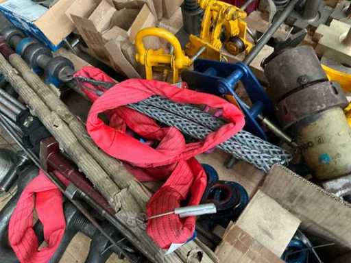 Batch of various lifting materials, tools and parts