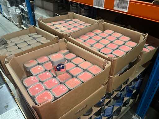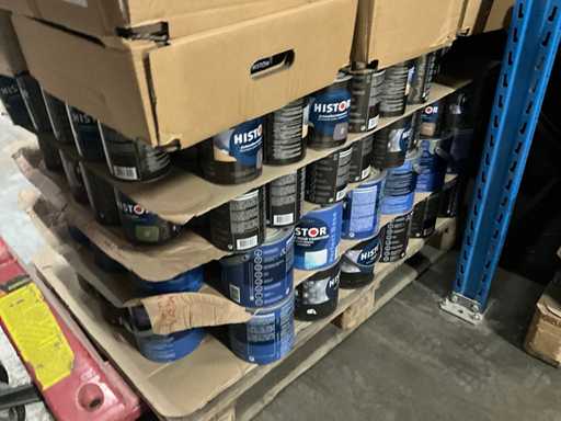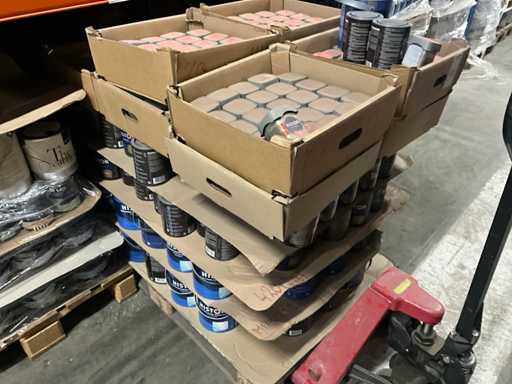 Concerns 1x pallet, 10 layers high stacked, 0.25, 0.75 1 & 2.5 liter cans