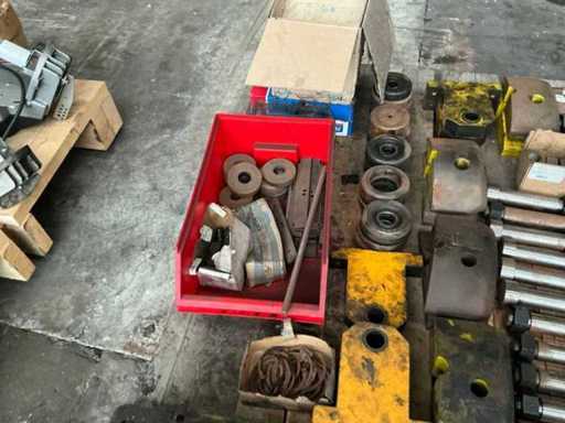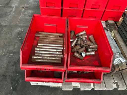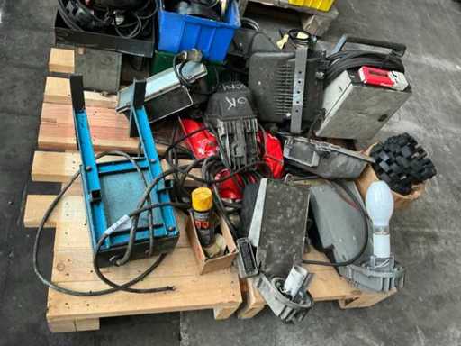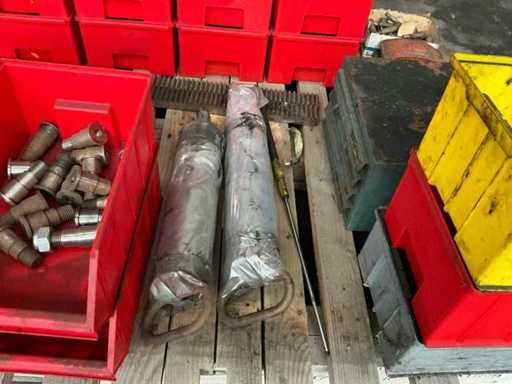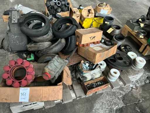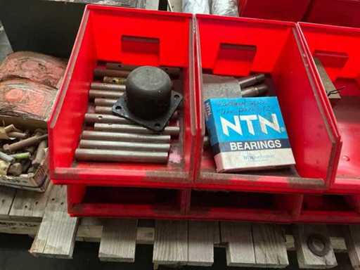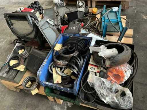 Including seals and bearing rings, belts, parts fixtures, machine parts, fasteners, steel shaft with gear,... on 6 pallets.