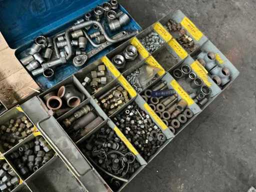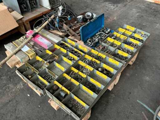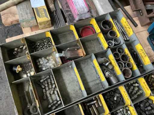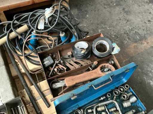 including fittings, hoses, welding electrodes, Bosch electric impact wrench, bolts & nuts, hand tools, .... on 3 pallets