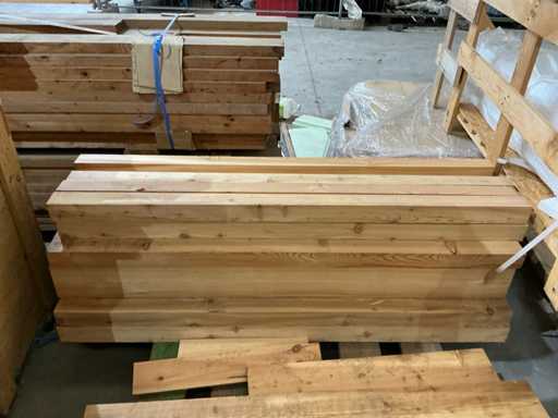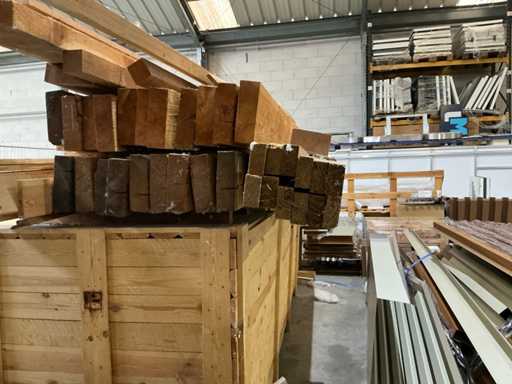 Including approximately 23 beams with dimensions of approximately 400 x 20 x 6.5 cm, approximately 108 wooden planks with dimensions of 602 x 14.5 x 4 cm, 22 various wooden slats including length up to 510 cm, complete with approximately 54 wooden beams with dimensions of 155 x 7 x 7 cm, 3 packs and wooden crate with dimensions 406 x 110 x 115 cm
