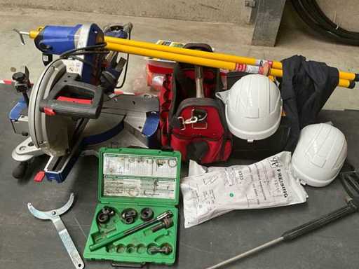 Batch of various workshop tools – radial arm saw and accessories