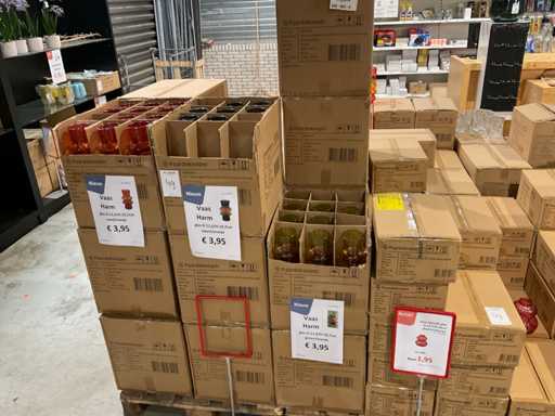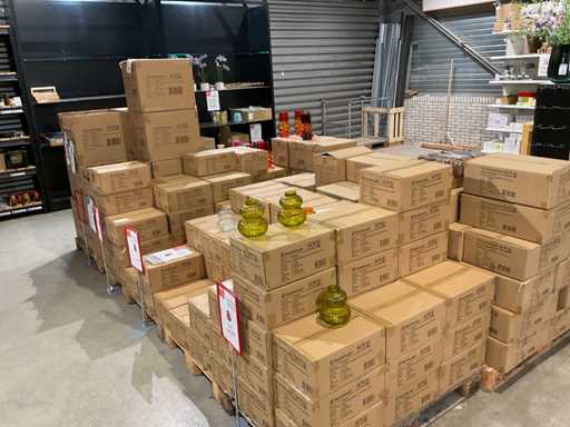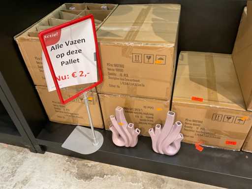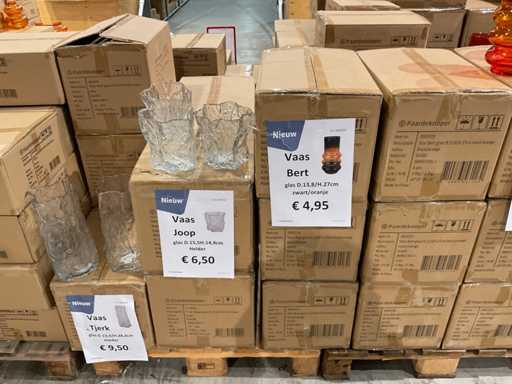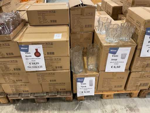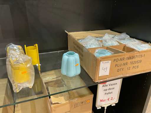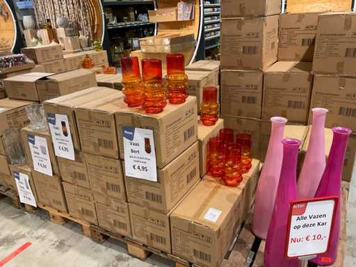 Contents on 10 pallets consisting of various colors of vases, including pallets