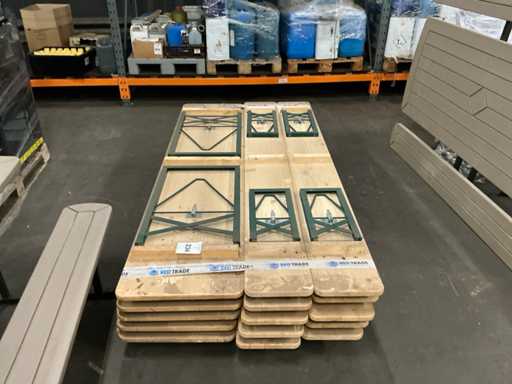 foldable/unfoldable; wood/metal; Table dimensions. approx. 220x50 cm