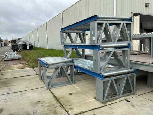 Consisting of track with dimensions approx. 300 x 98 x 70 cm complete with smaller roller conveyor dimensions approx. 150 x 98 x 70 cm chassis slightly damaged
