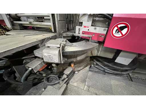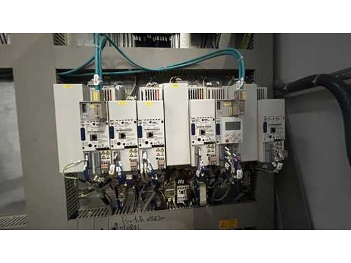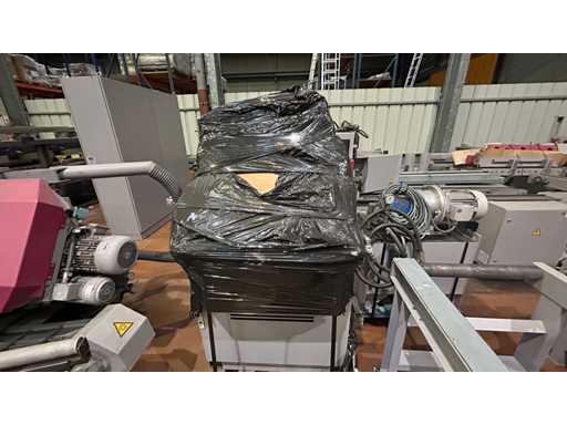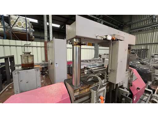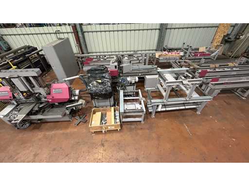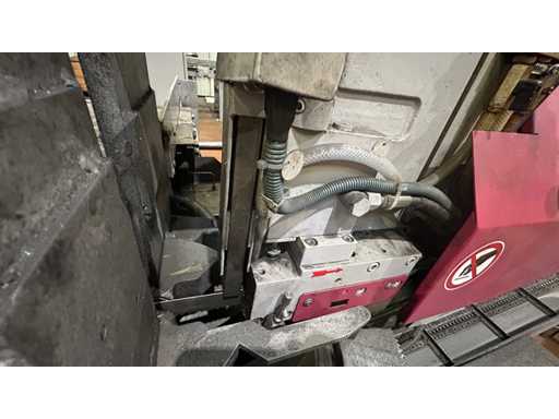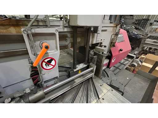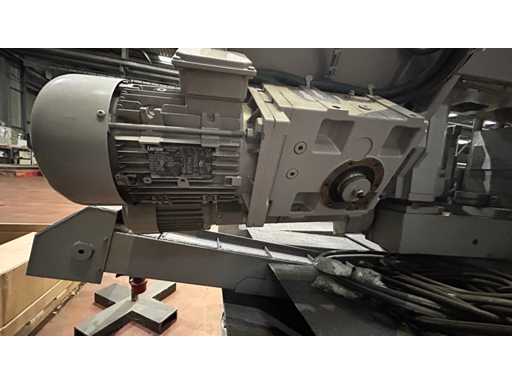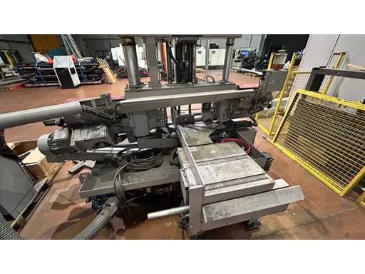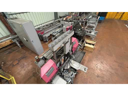 Motorized infeed and outfeed conveyors – Separate control panel – Hydraulic vise – Automatic lubrication.