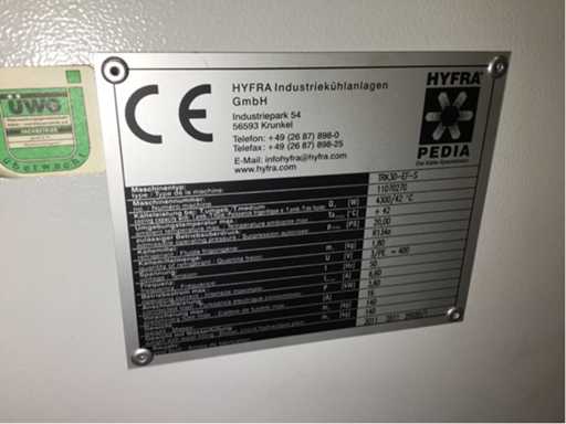 Serial Number: 475869 / 473950; Band type: yes; Instructions available: yes; Machine weight: 1125 kg; Overall dimension L: 2380 mm; Overall dimension W: 2000 mm; Overall dimension H: 2200 mm; Description: with cooling system "Hyfra type TRK30–EF–S, with coolant R134a 1.8 kg, fleece width 715 mm, system dismantled,