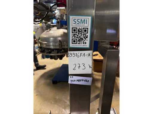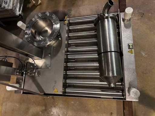 Mobile filling station for powders and granules with integrated scale, control unit and roller conveyor