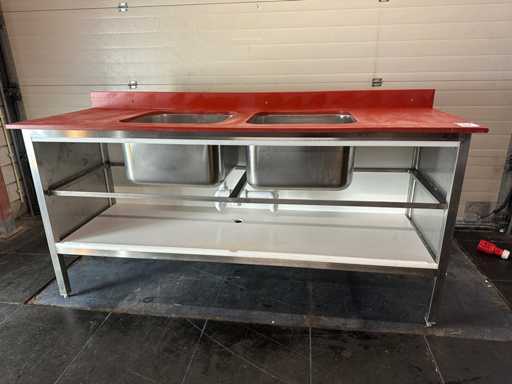 2 sinks ; is missing 1 leg ; 2000x700x930