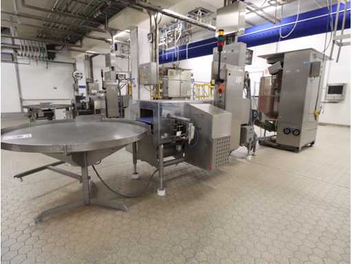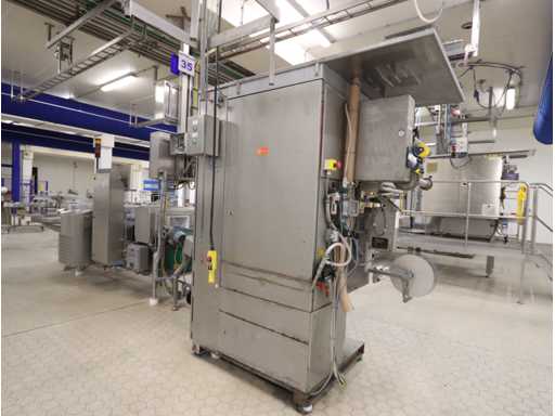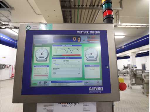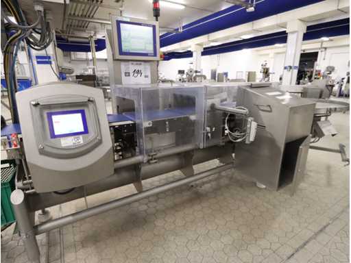 Equipped with "Bosch" foil packaging machine, type SVZ2500A, with "Markem-Imaje" inkjet codinger, checkweigher, "Mettler Toledo" type XS3CC, with metal detector and double reject station, including buffer table