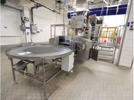 Equipped with "Bosch" foil packaging machine, type SVB2501A, with "Markem-Imaje" inkjet coding, checkweigher, "Mettler Toledo" type XS3CC, with metal detector and double reject station, including buffer table